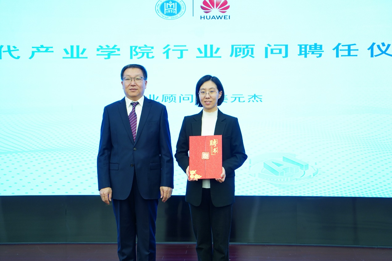 期間,進(jìn)行了華為現(xiàn)代產(chǎn)業(yè)學(xué)院行業(yè)顧問聘任儀式,由劉瑞鴻為姜元杰頒發(fā)了行業(yè)顧問聘任書。
