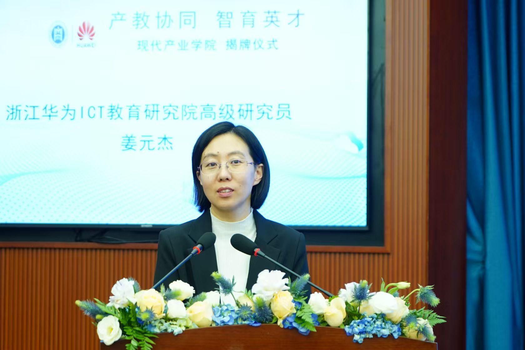 同期,進(jìn)行了現(xiàn)代產(chǎn)業(yè)學(xué)院專家論壇,浙江華為 ICT 教育研究院高級研究員姜元杰以“華為數(shù)智人才培養(yǎng)實(shí)踐分享”為主題做了專題講座。